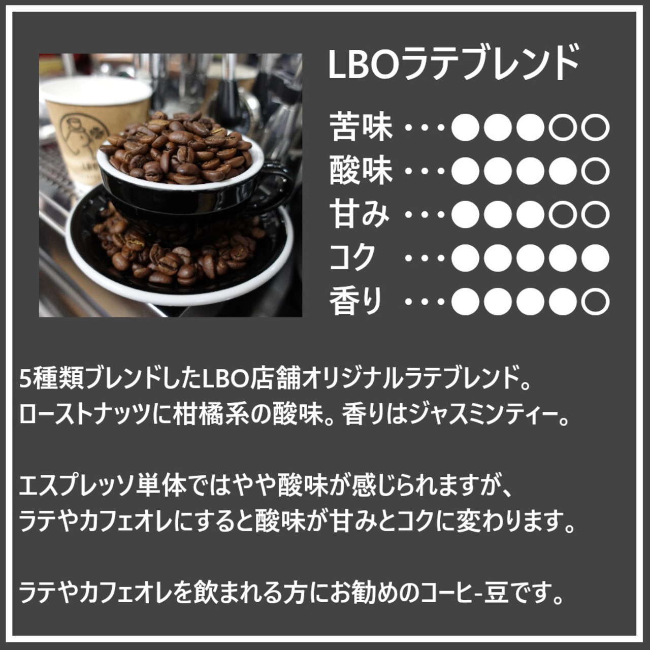 Lespresso Laboの店頭で使用している、専用ブレンドです。
